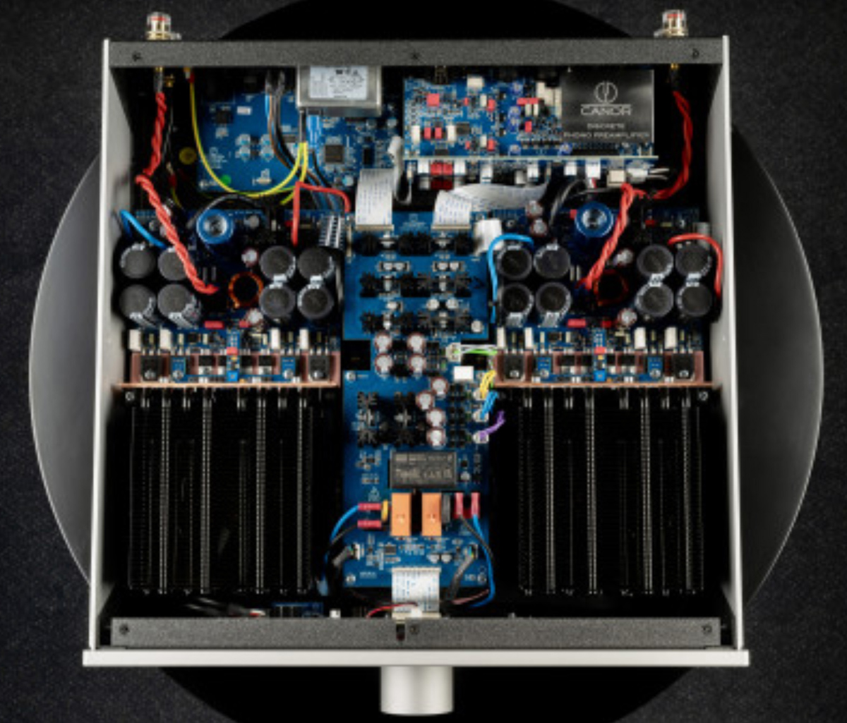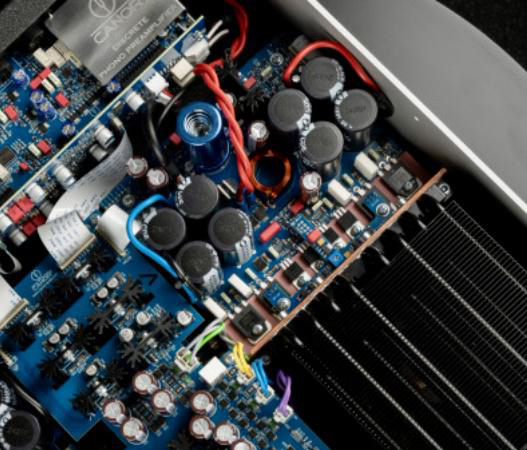 100W(8Ω)150W(4Ω)のパワー部は、真空管ベースのバランス差動入力段と差動フィードバックパスを備えており、その後段にクラスA電流ダンピング出力段を配置。低電力のウルトラリニア・クラスAアンプが常にスピーカー負荷を制御し、高電力のクラスAB段が重い負荷電流を供給します。この独自の電流ダンピングトポロジーは、繊細なクラスA段を複雑なスピーカー負荷電流から効果的に隔離し、クラスAとクラスABの動作モード間の遷移を一切発生させることがないため、優れたクラスAのシグナル・リニアリティとクラスABの低消費電力というメリットを両立させます。