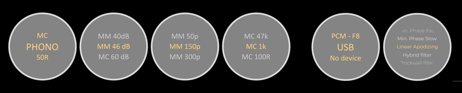 Virtus A3は高品質ディスクリートフォノステージを搭載し、MM/MC両カートリッジに対応。PH1.10やAsterion V2といった世界中で高い評価を得てきたフォノアンプ設計の巧みさは、Virtus A3の内蔵フォノステージでも遺憾なく発揮されています。もちろん、カートリッジ負荷調整やゲイン調整機能も備えています。カートリッジ負荷はフロントパネルのタッチパネルインターフェースから選択可能です。